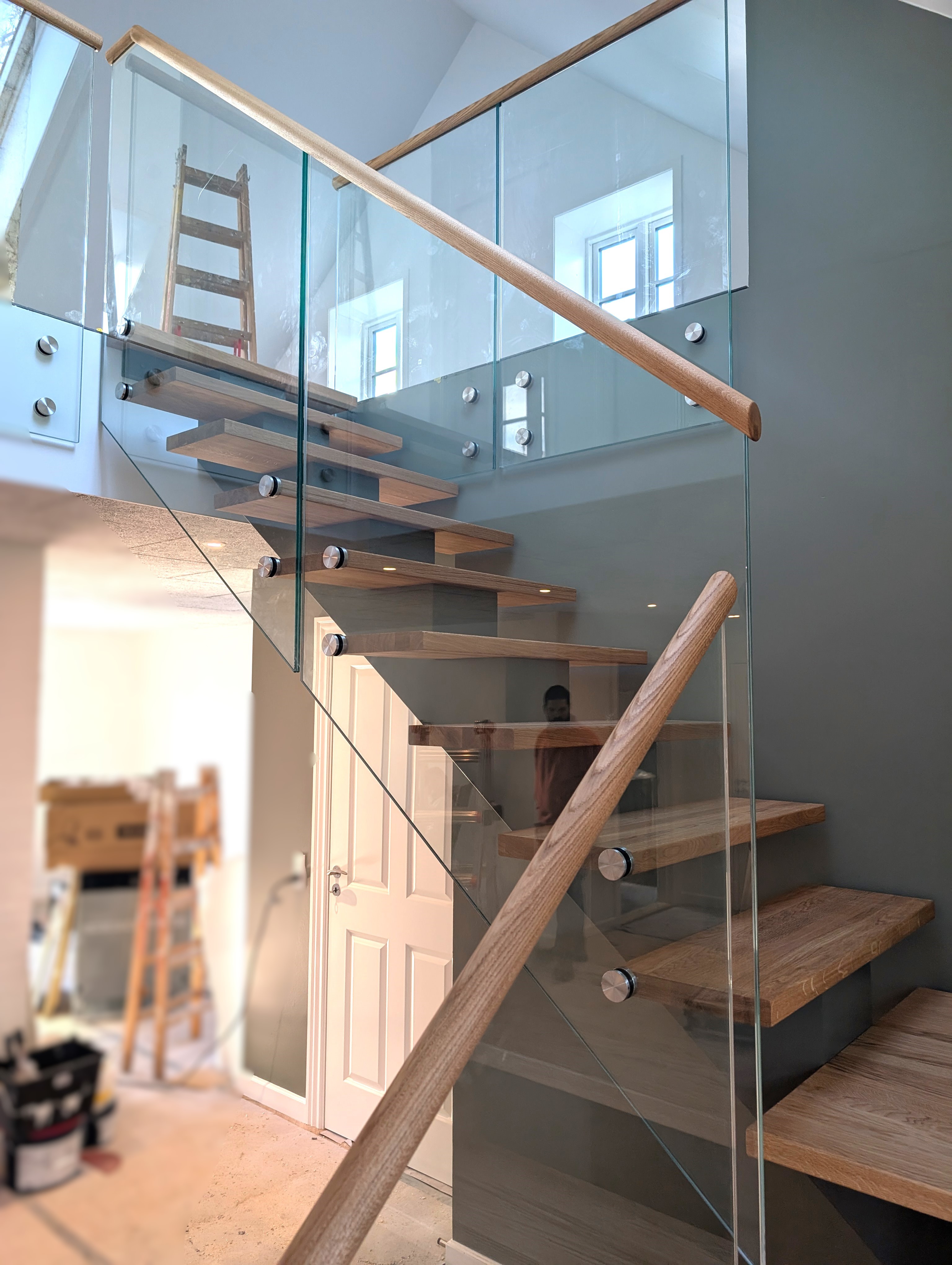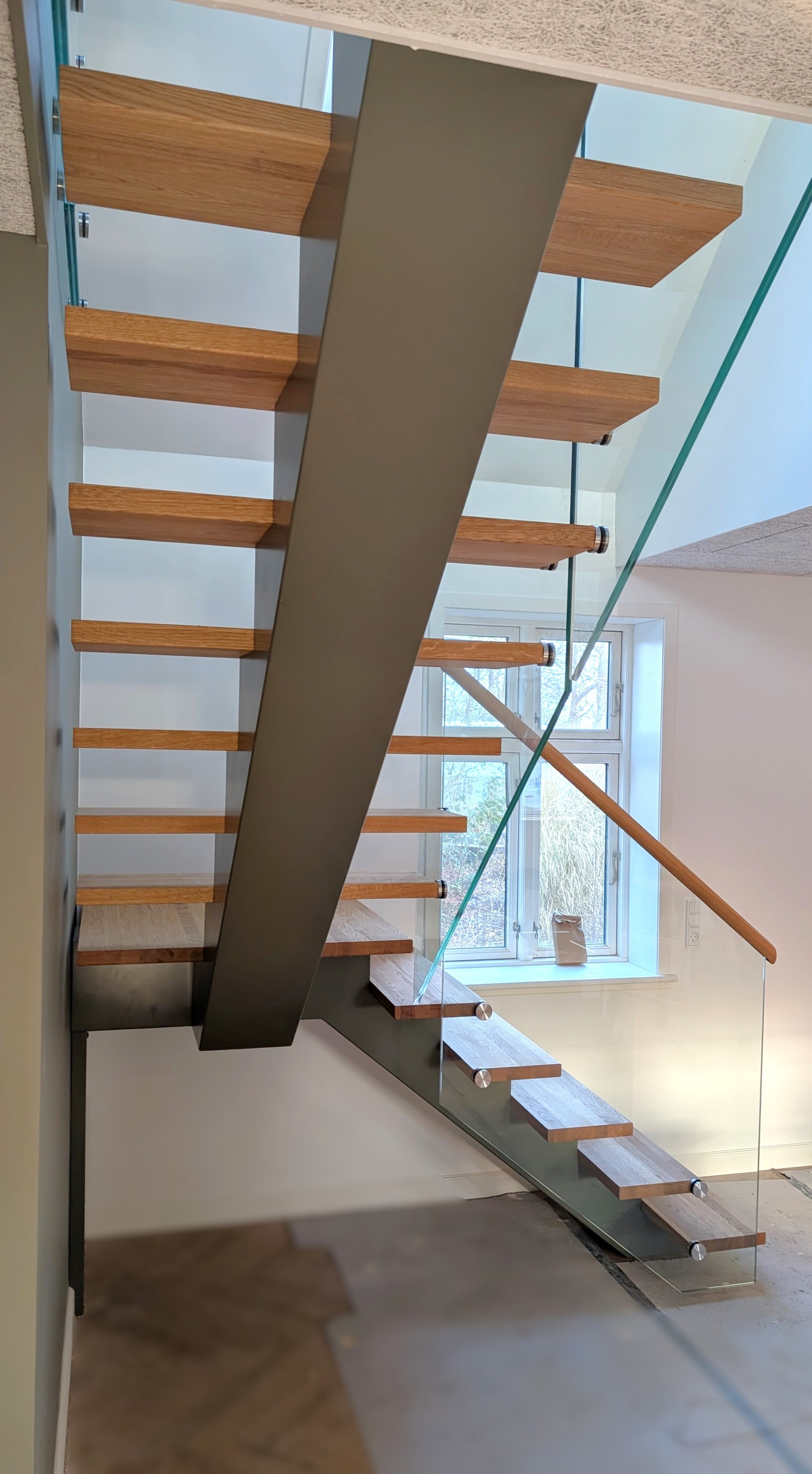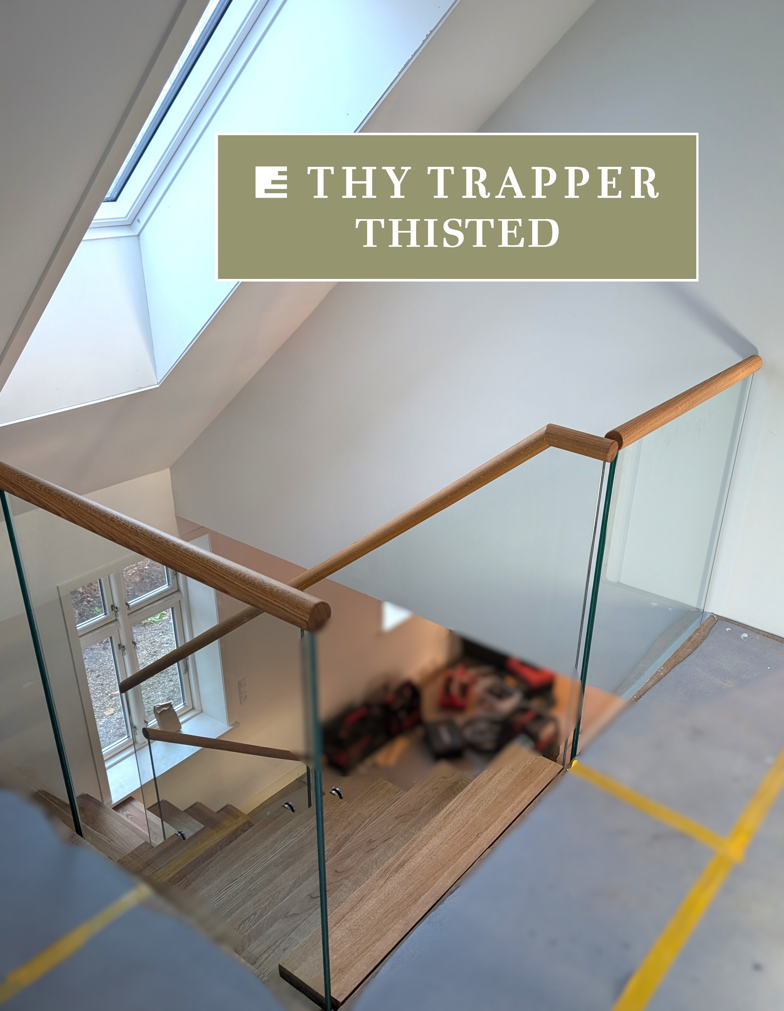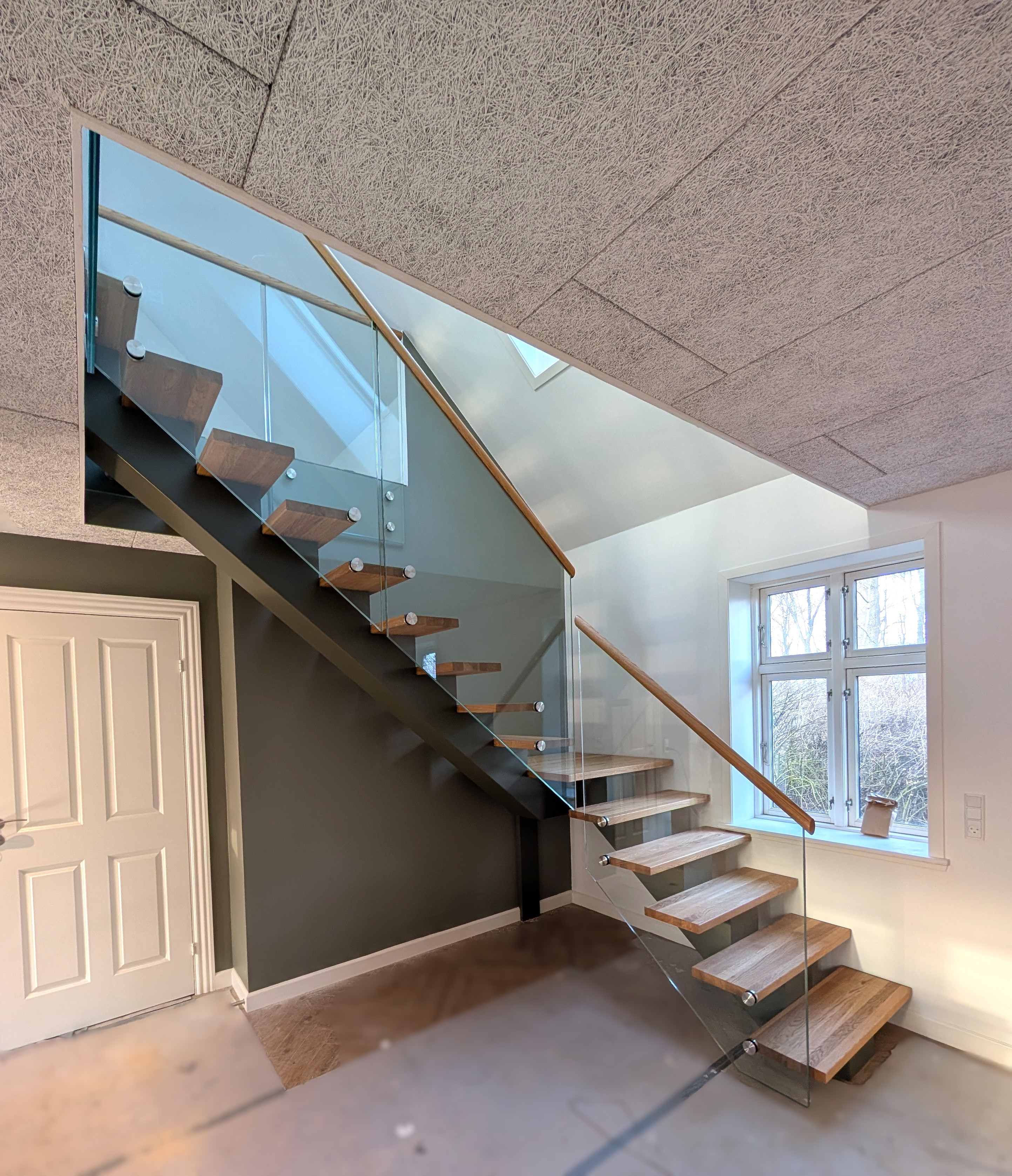 Gelænder type TT 217 – monteret med Ø 50 mm. rustfri glasbeslag.